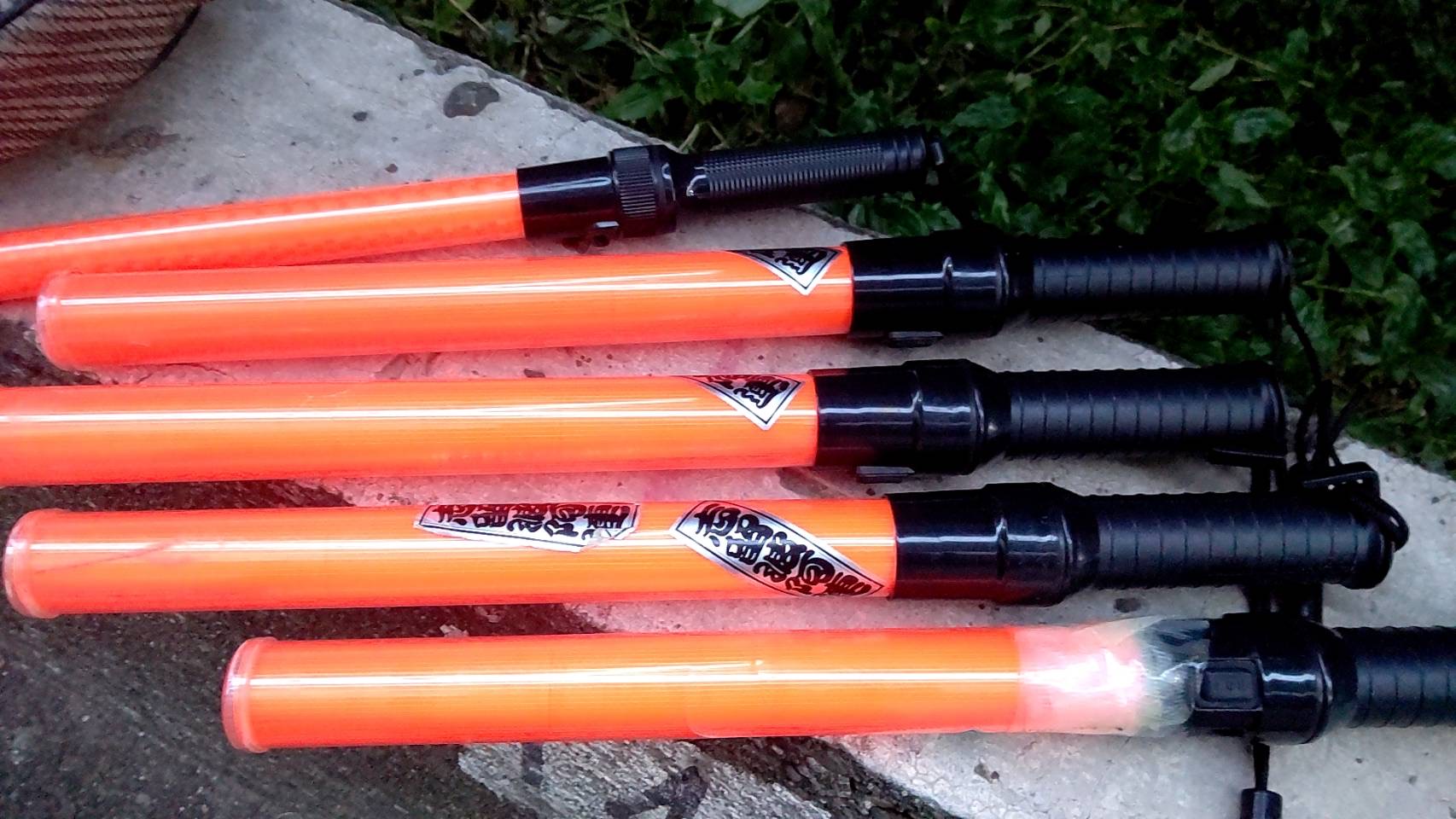 - 『警備』の名札をつけるのと、警備棒を持つようにお願いします。その際に、法被を着る,手ぬぐいを見える位置に体に巻くなど警備であることがわかるものを身につけてください